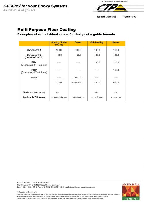 Water-based Systems: Guide Formulations